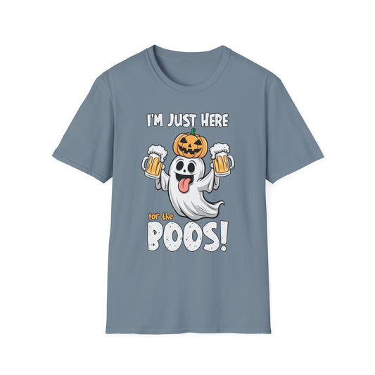 Funny Halloween Ghost T-Shirt - "I'm Just Here for the Boos!" - Unisex Softstyle