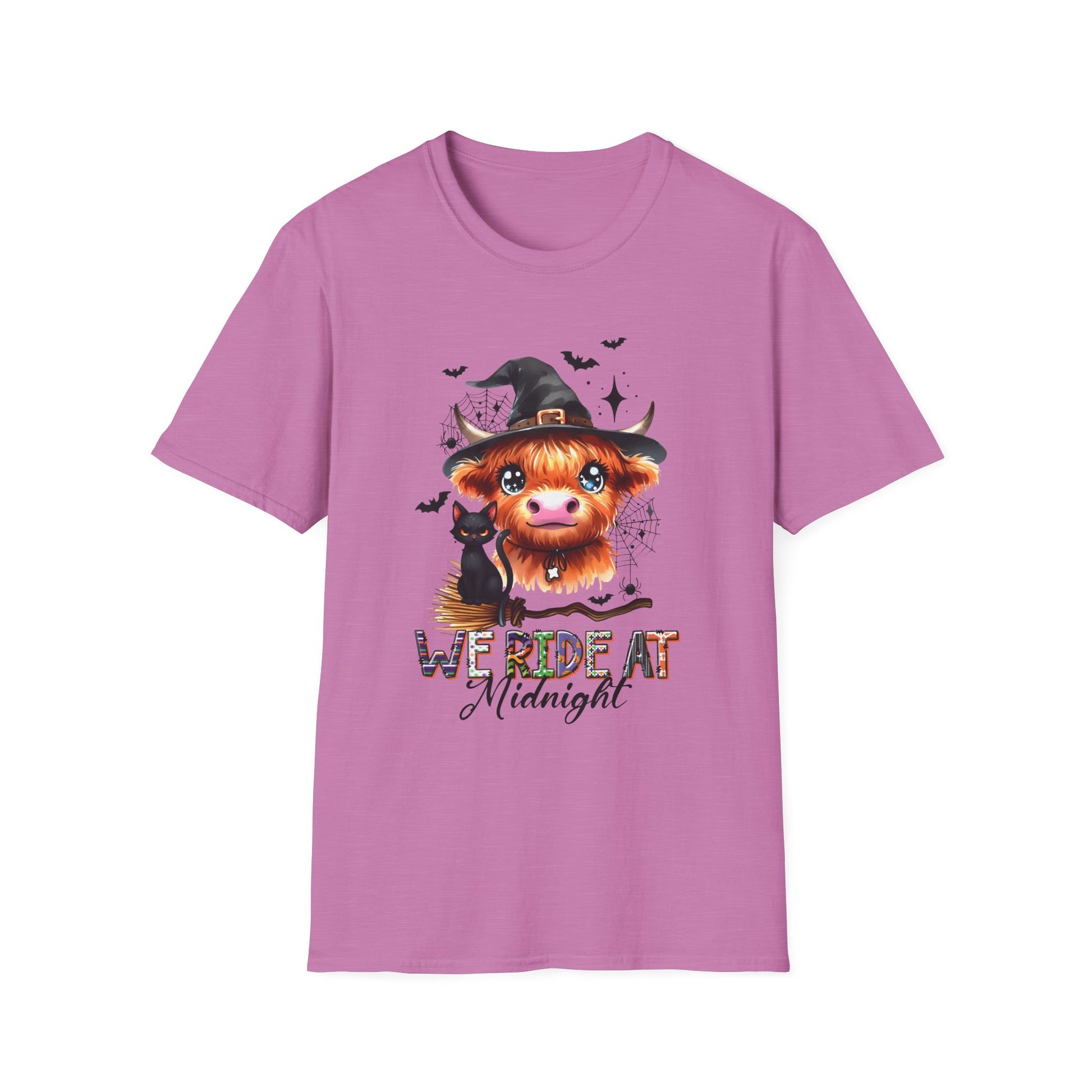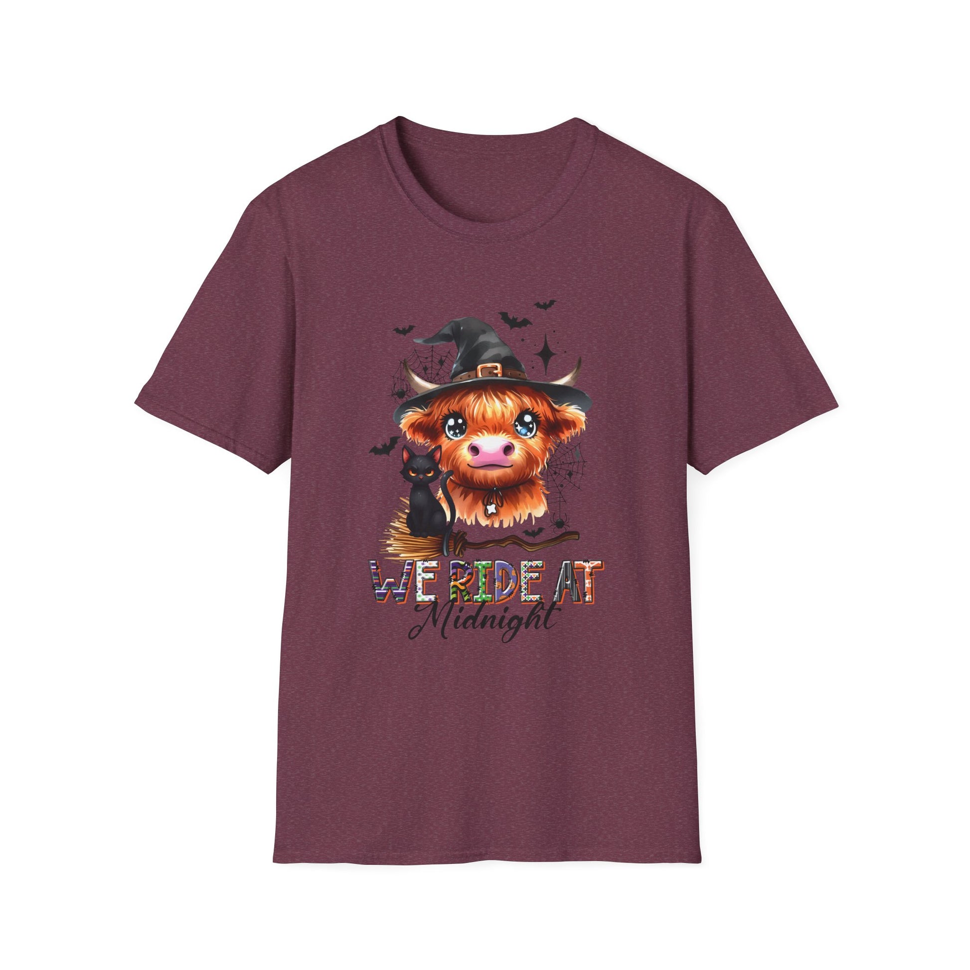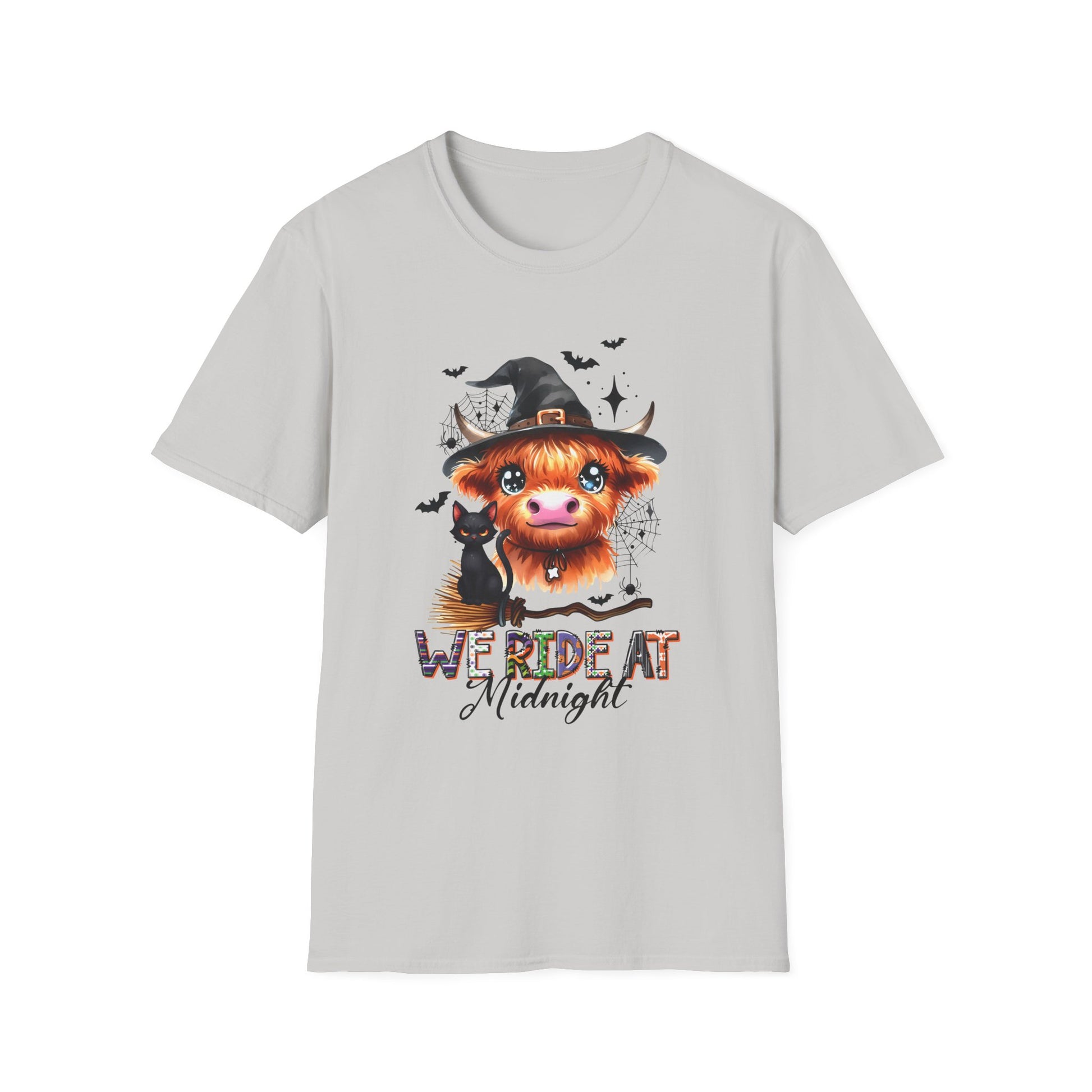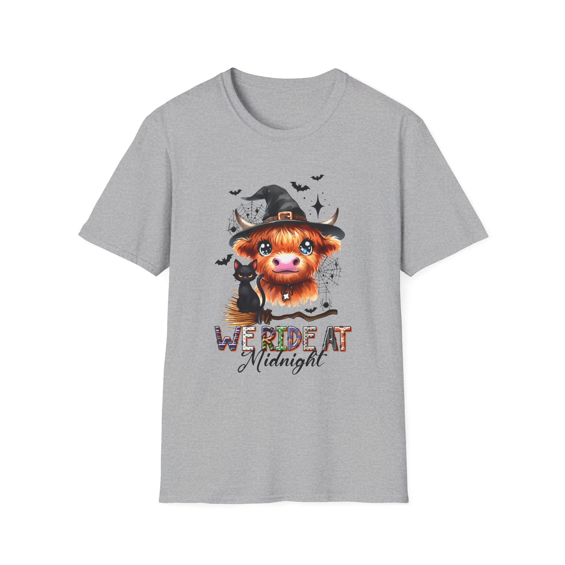 Halloween Cow Graphic T-Shirt - "We're Out at Midnight" - Unisex Softstyle Tee