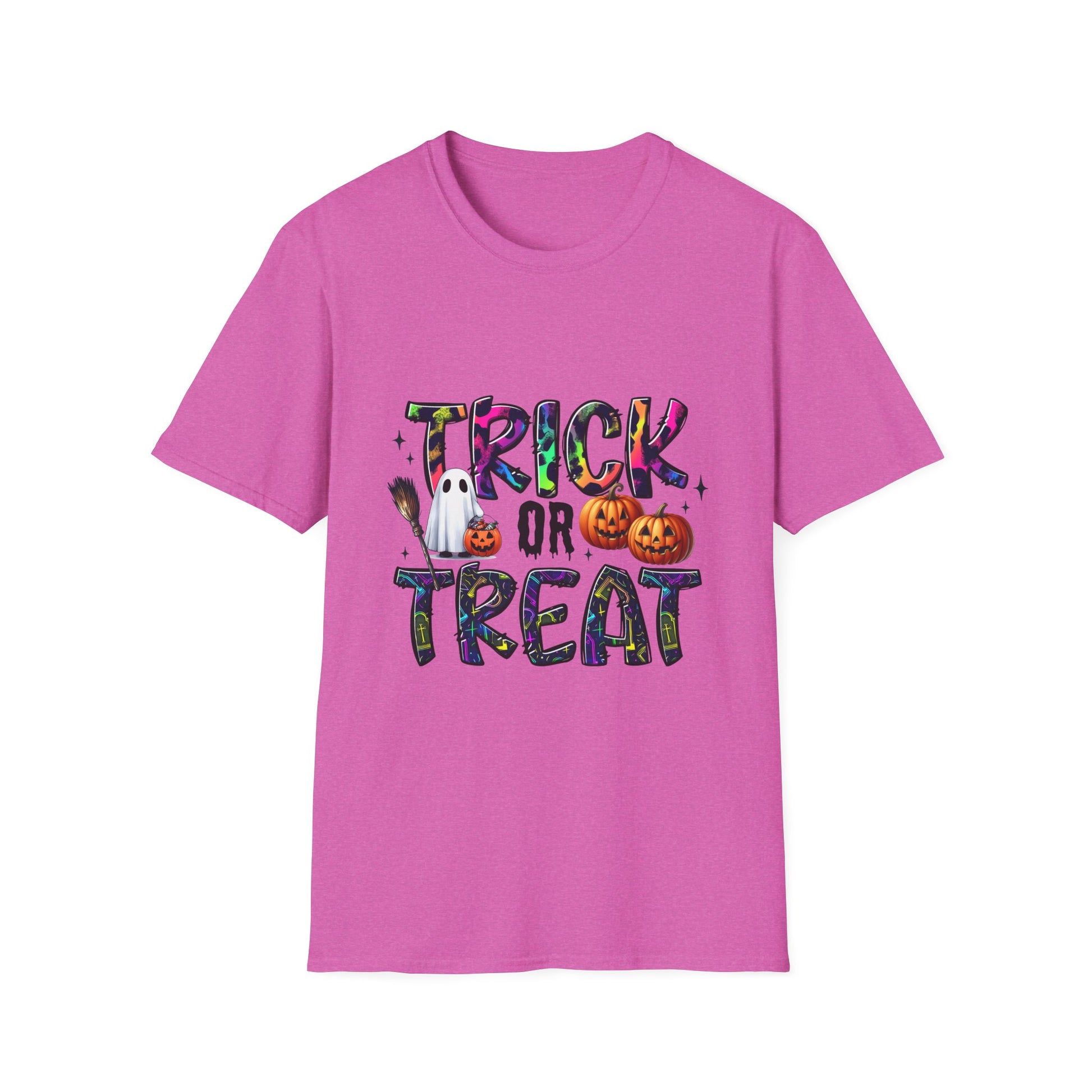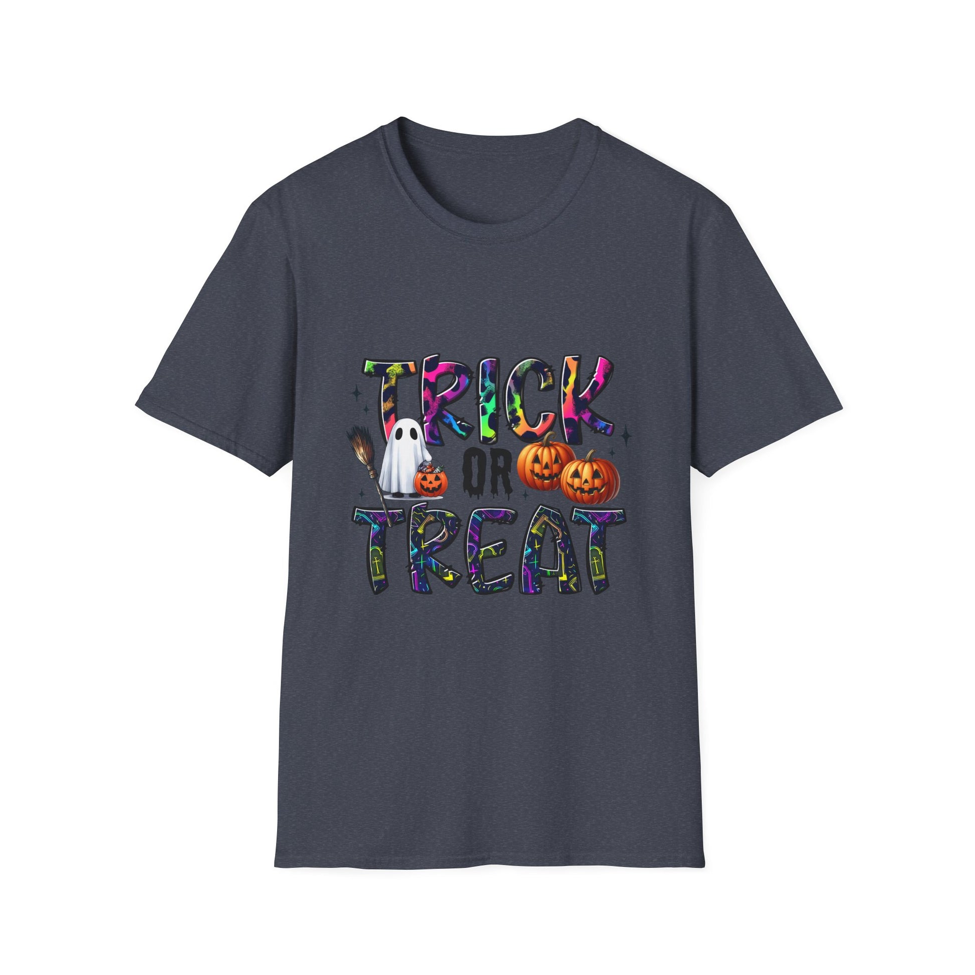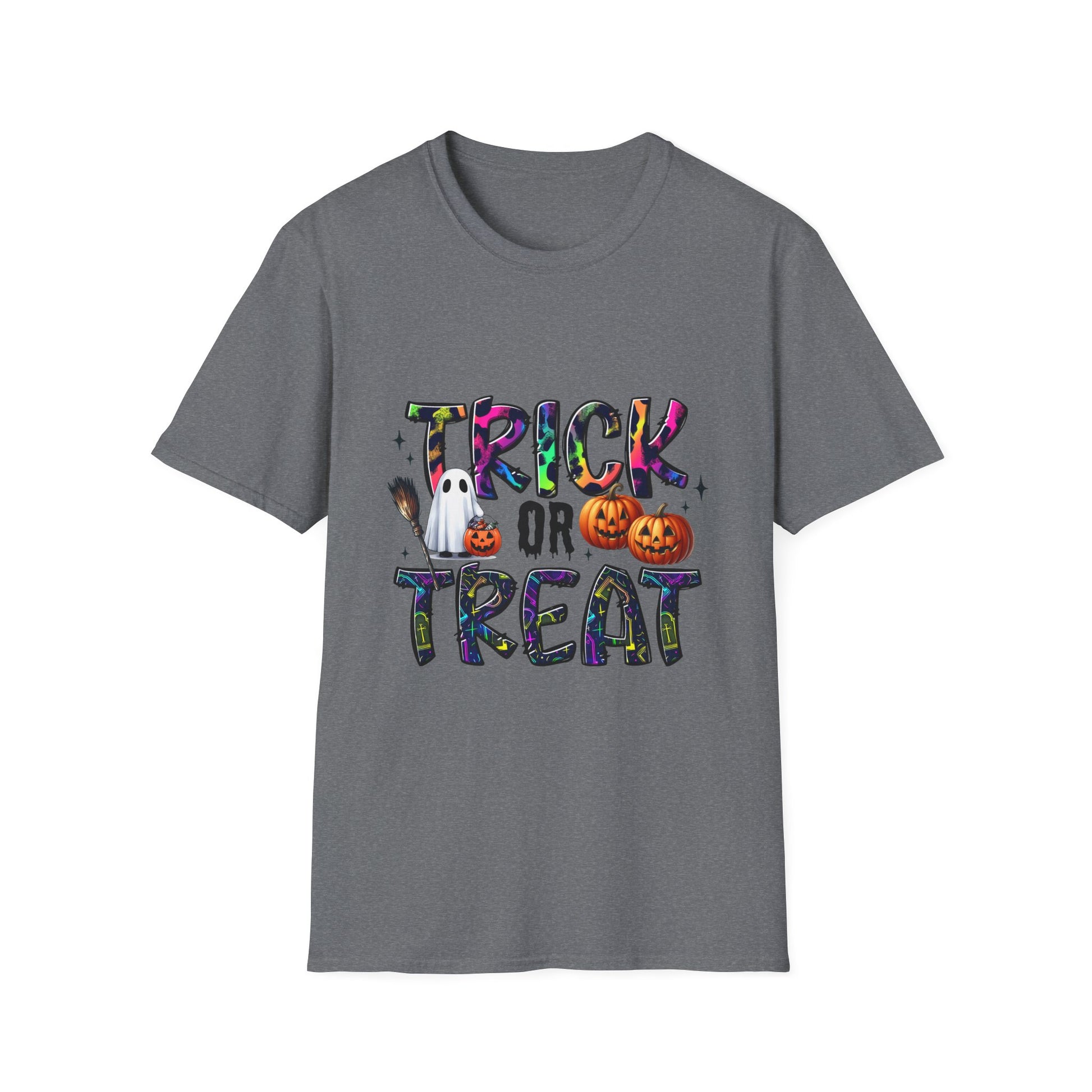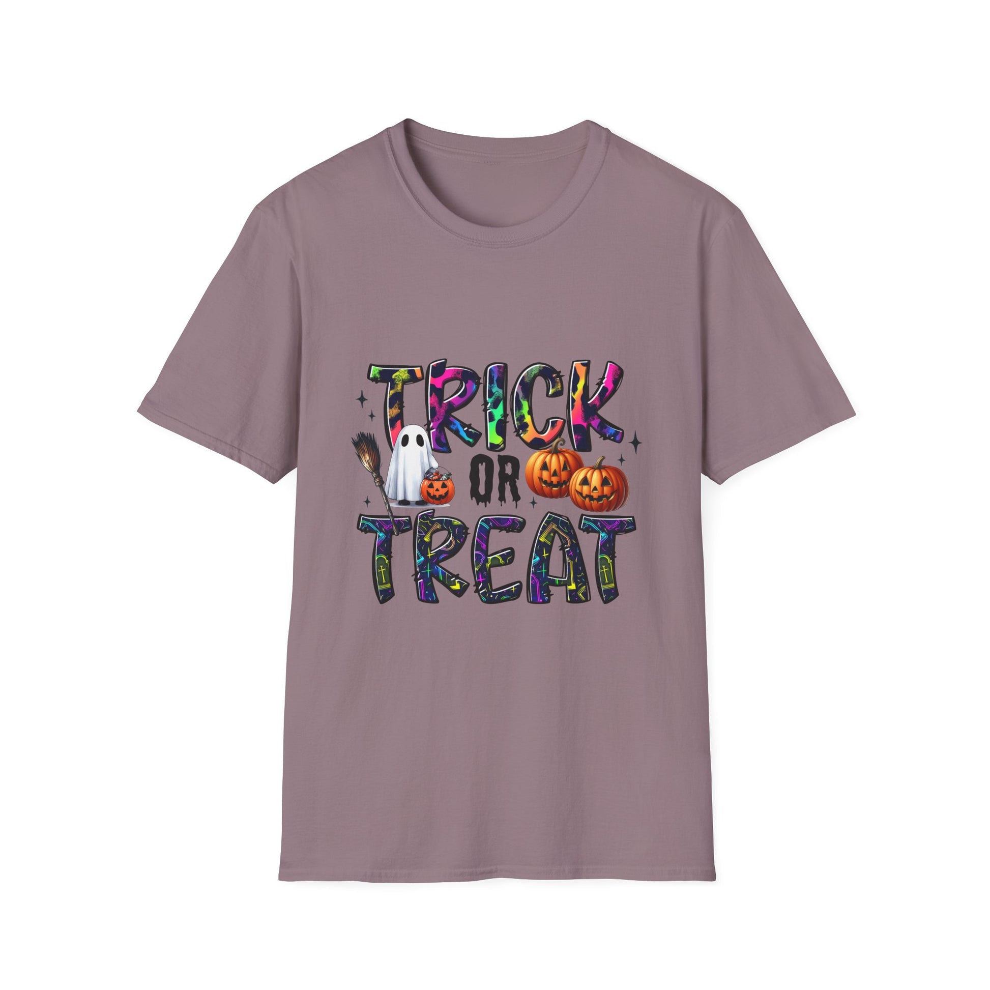 Introducing the perfect addition to your wardrobe: a Unisex Softstyle T-Shirt designed for every casual occasion. This t-shirt embodies a playful spirit with its fun "Trick or Treat" design, making it ideal for Halloween celebrations. Its lightweight, 100% ring-spun cotton fabric ensures a soft and comfortable fit all year round. Imagine wearing it during spooky gatherings, festive parties, or cozy nights in – it’s versatile enough to pair with jeans, shorts, or layered under jackets. This t-shirt makes a fantastic gift for friends and family who love to celebrate the Halloween vibe. Not only does it add a festive touch to your holiday attire, but it's also suitable for casual outings or everyday wear. Whether you're heading to a Halloween event or lounging at home, this shirt will keep you comfortable and stylish, resonating with all spirit enthusiasts.