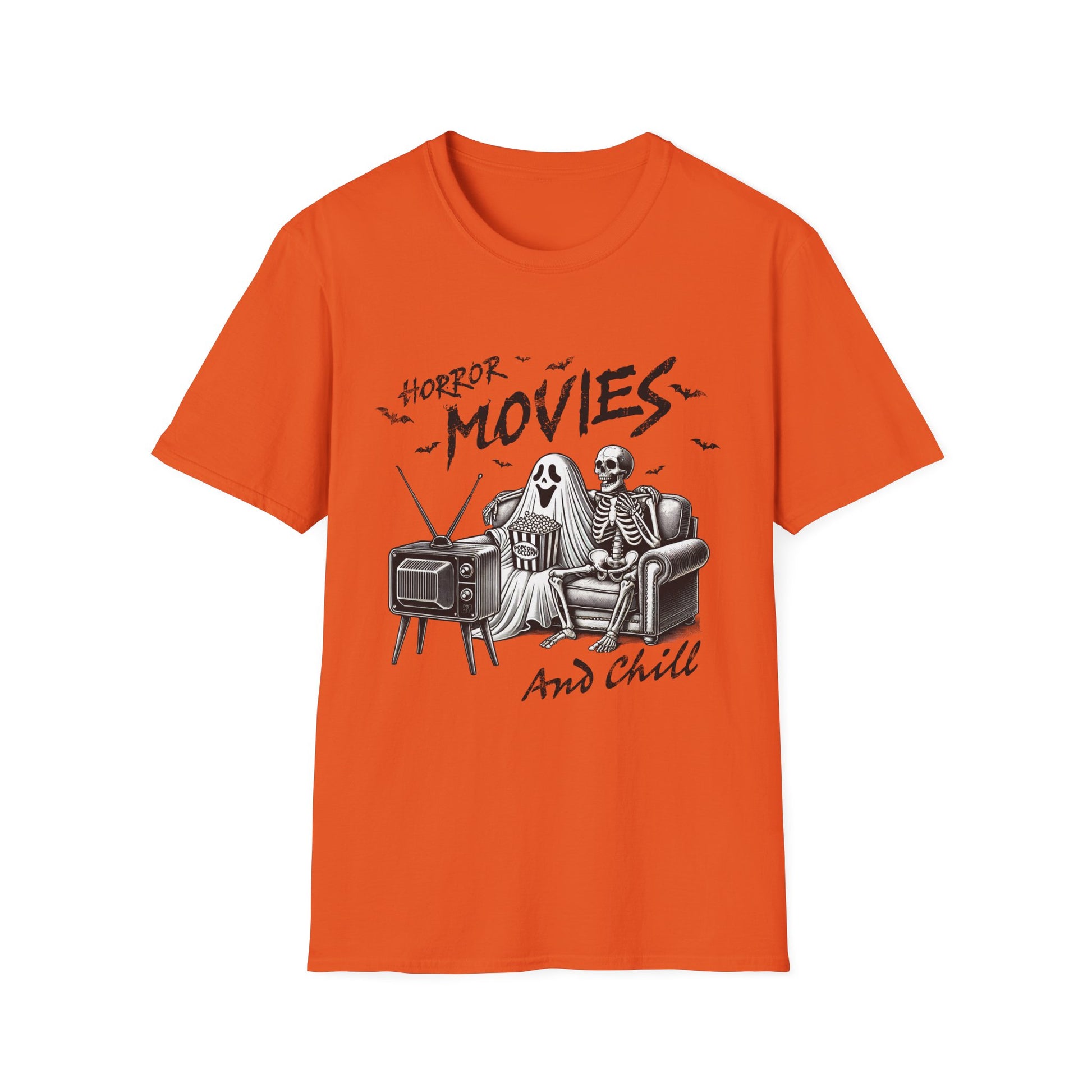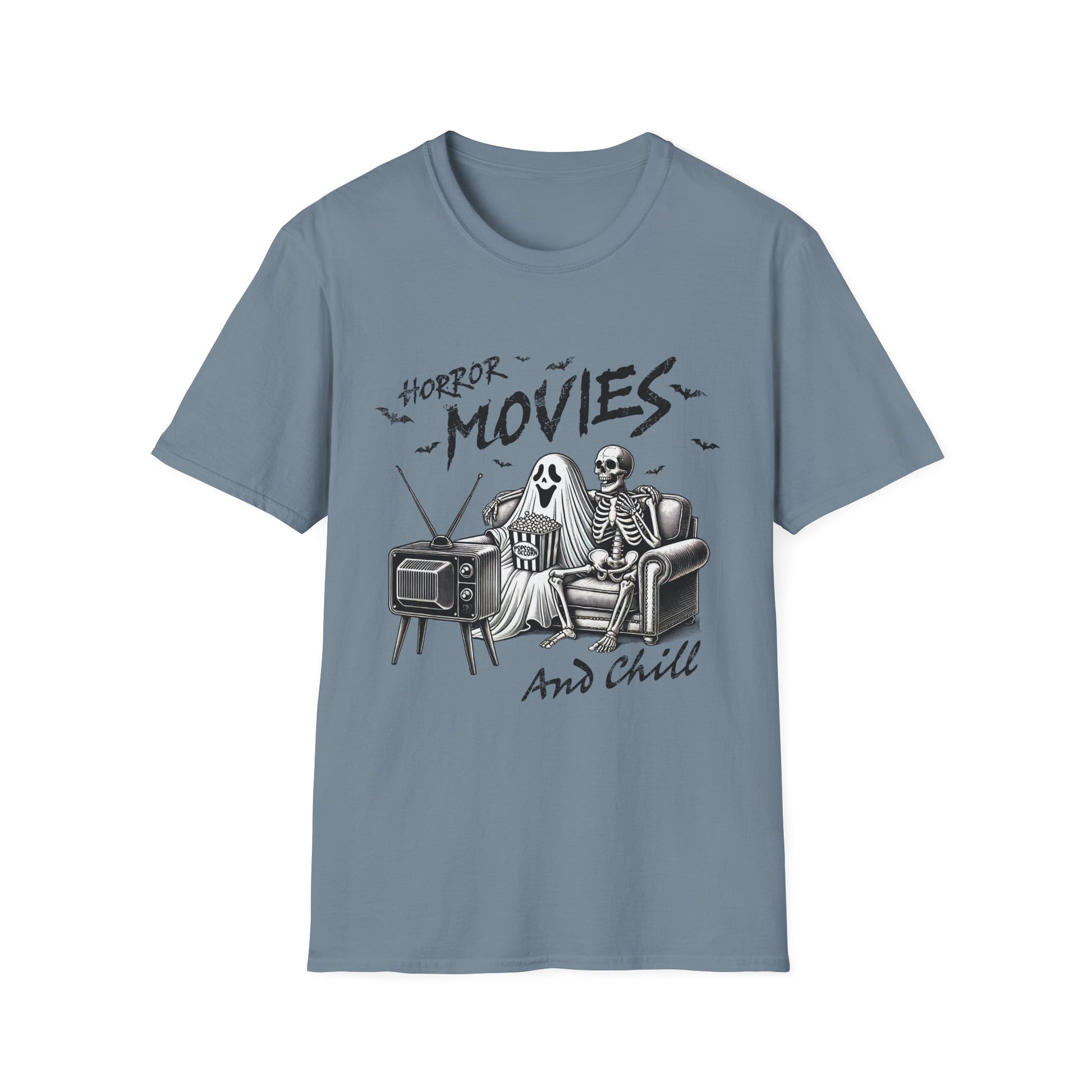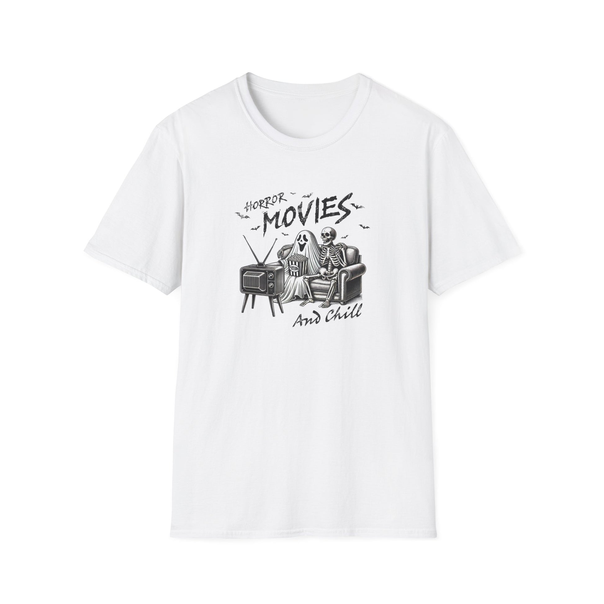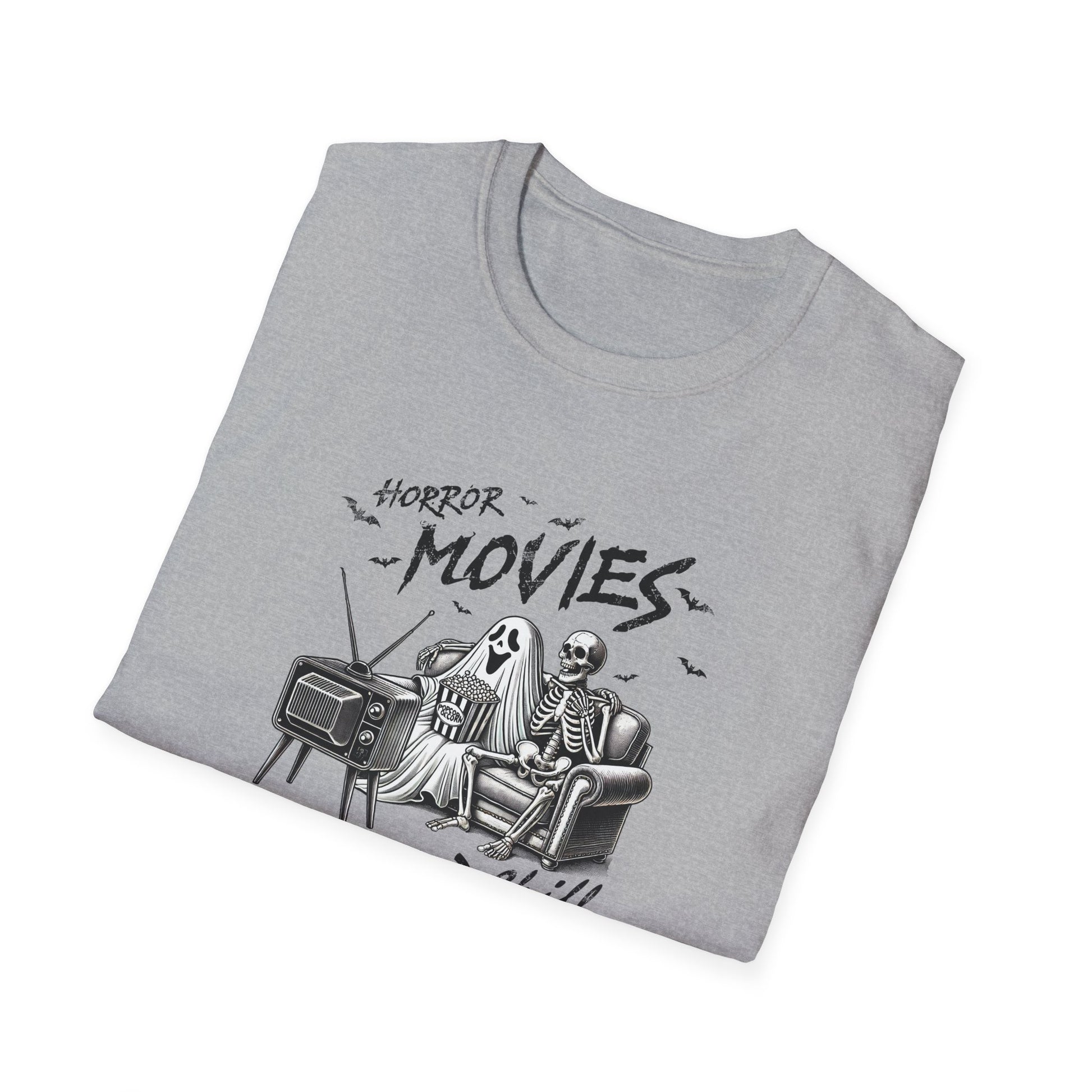 Horror Movies and Chill T-Shirt - Unisex Softstyle Tee for Movie Lovers- Great Halloween Tshirt