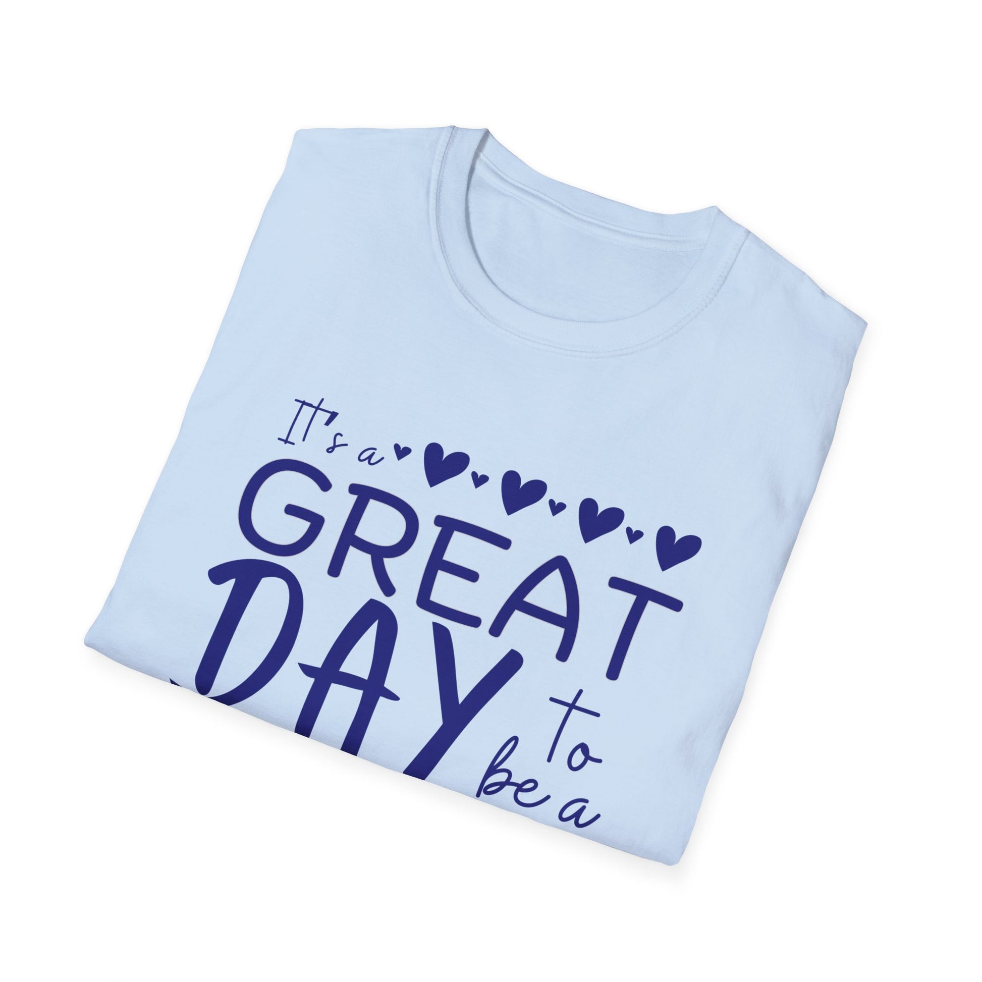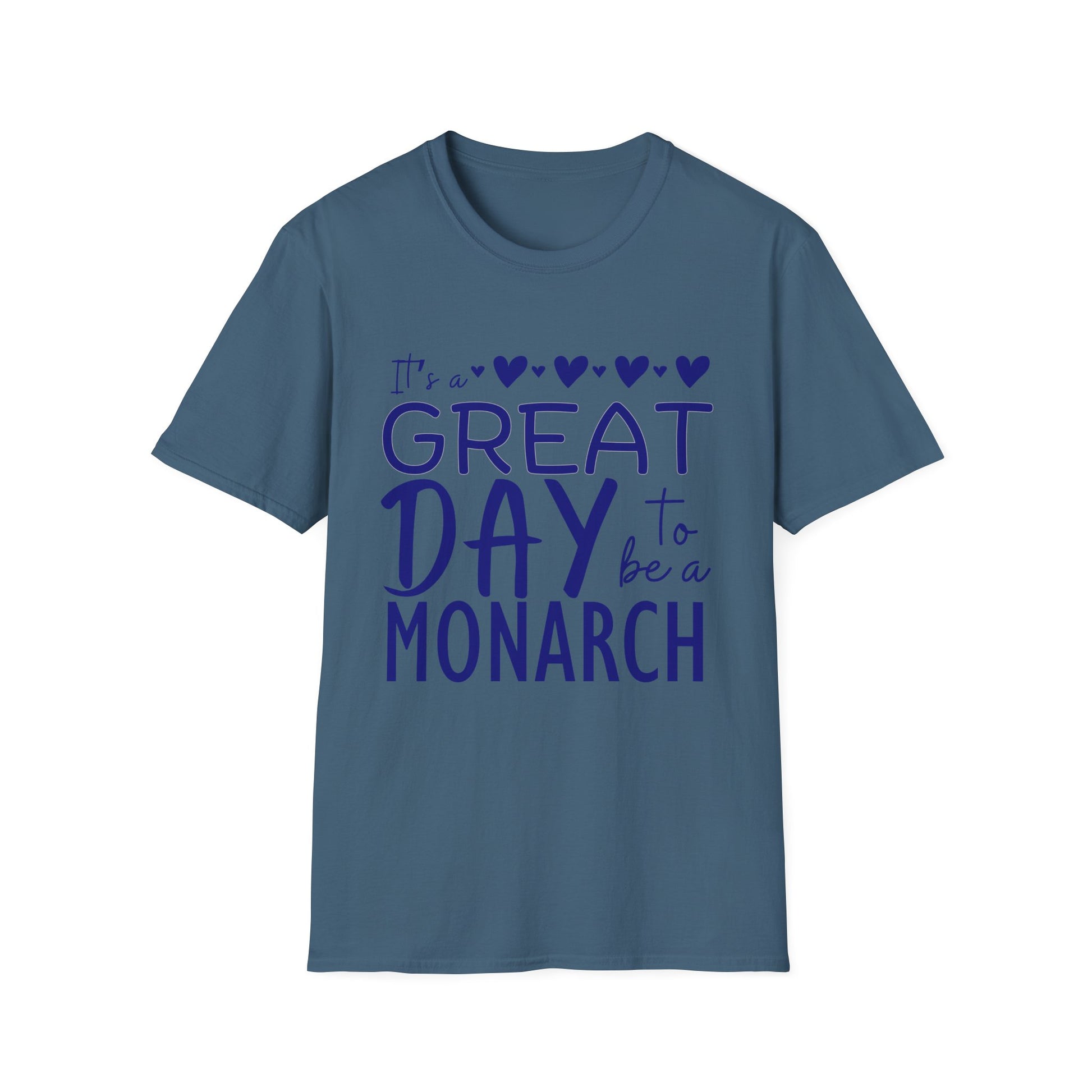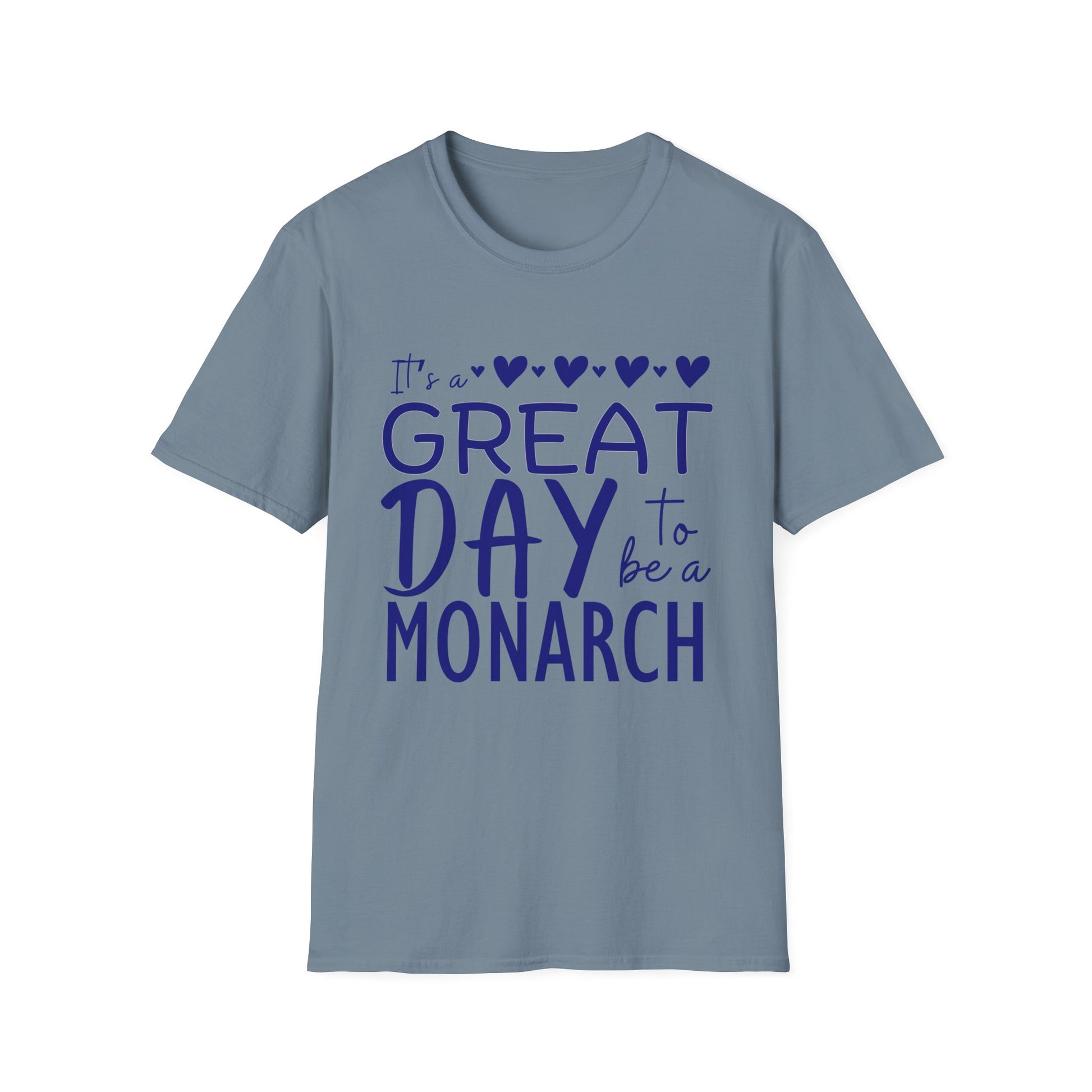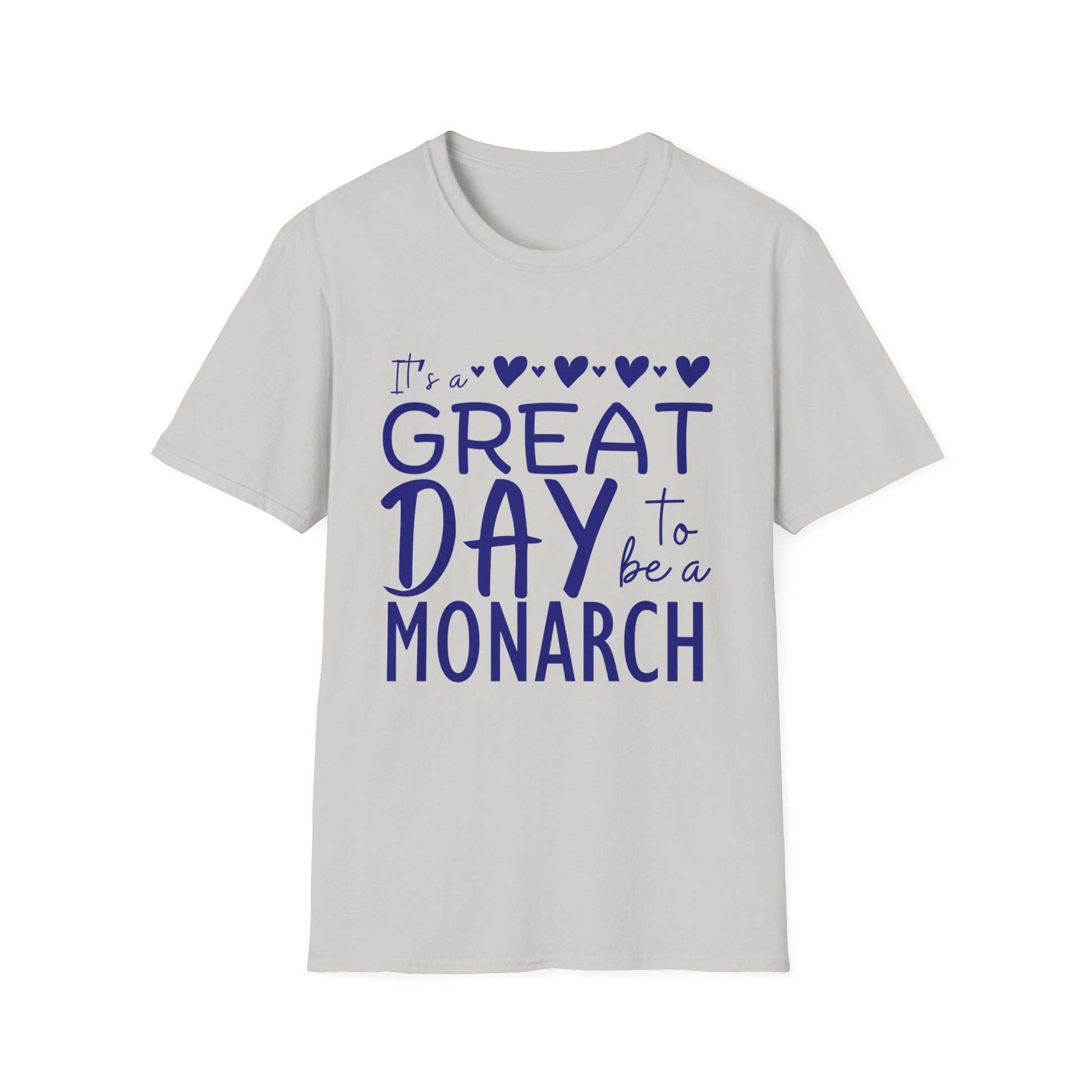 "It's a Great Day to Be a Monarch" Blue Lettering Unisex Softstyle T-Shirt - Fun & Cheerful Graphic Tee