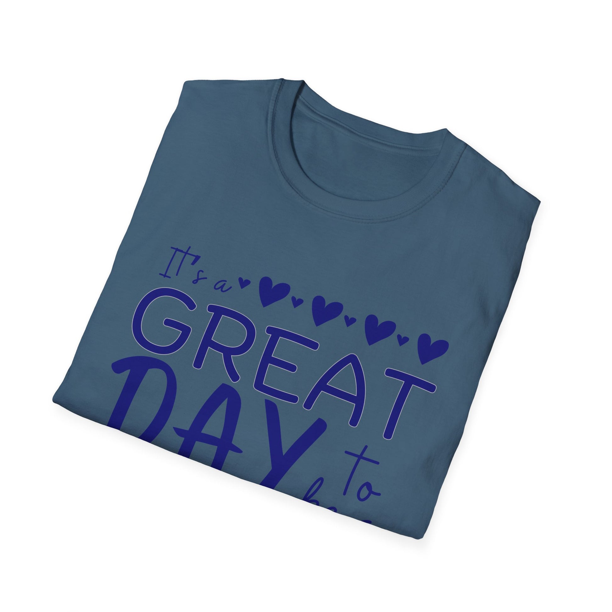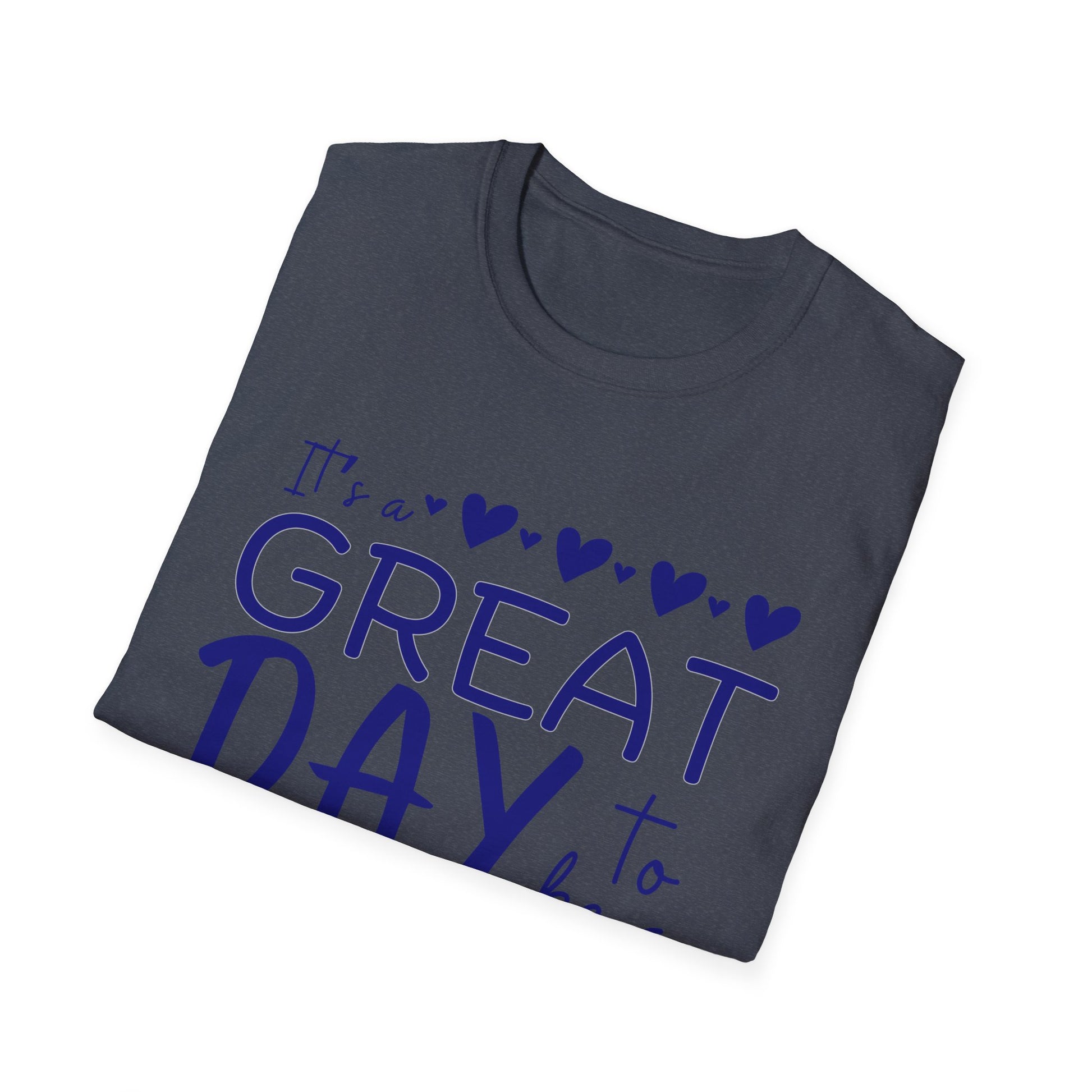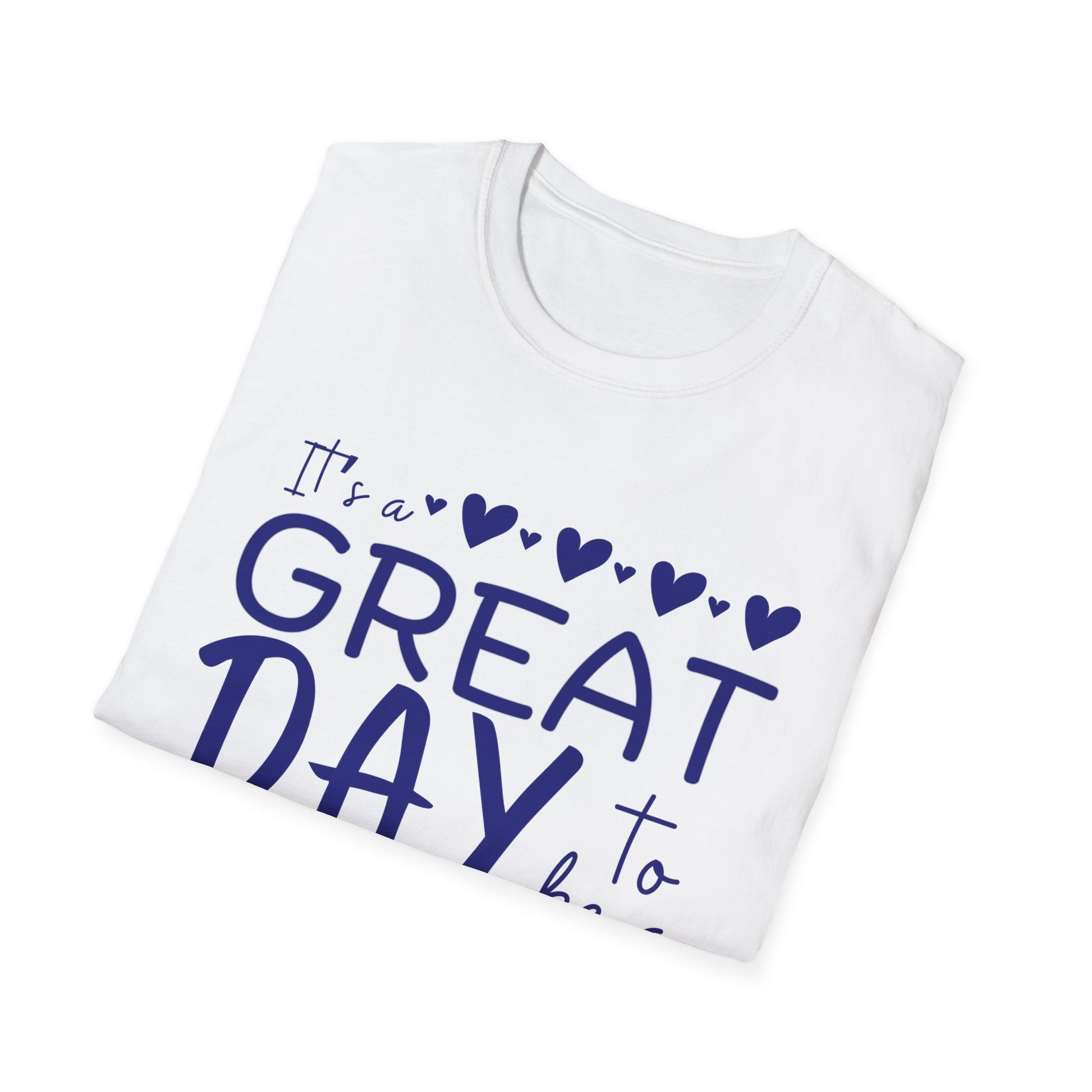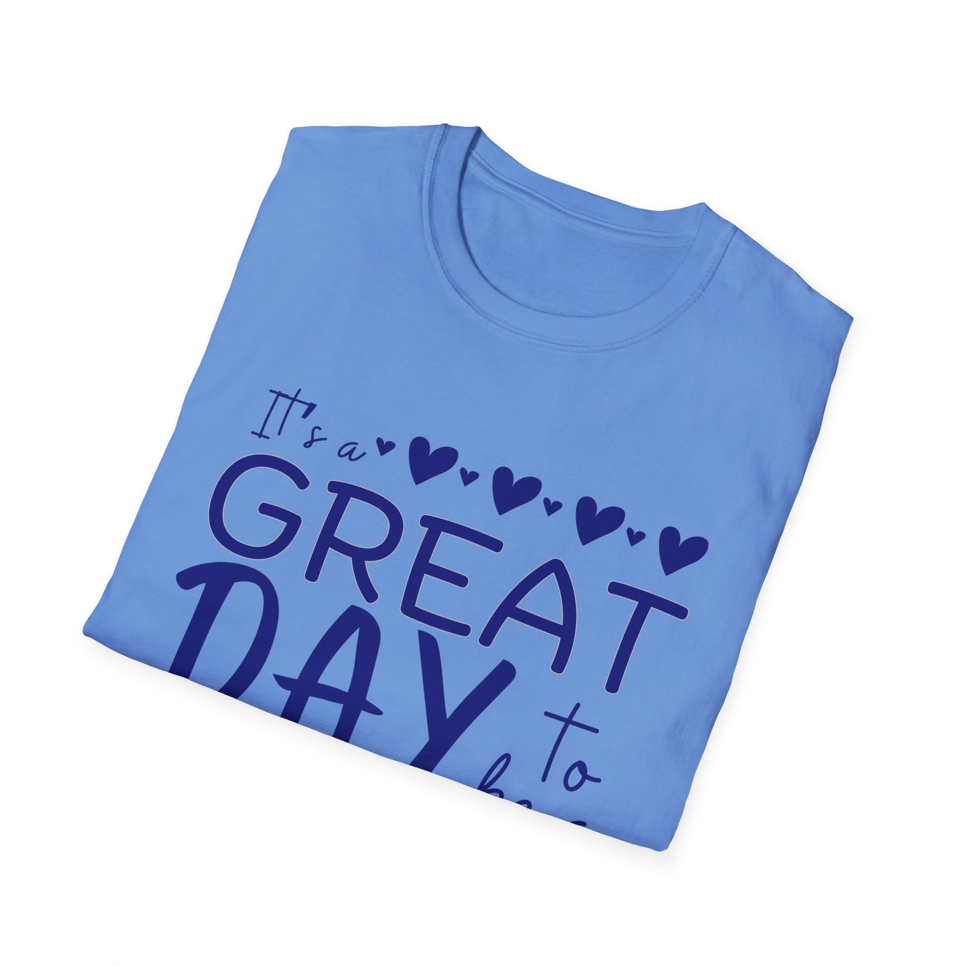 "It's a Great Day to Be a Monarch" Blue Lettering Unisex Softstyle T-Shirt - Fun & Cheerful Graphic Tee