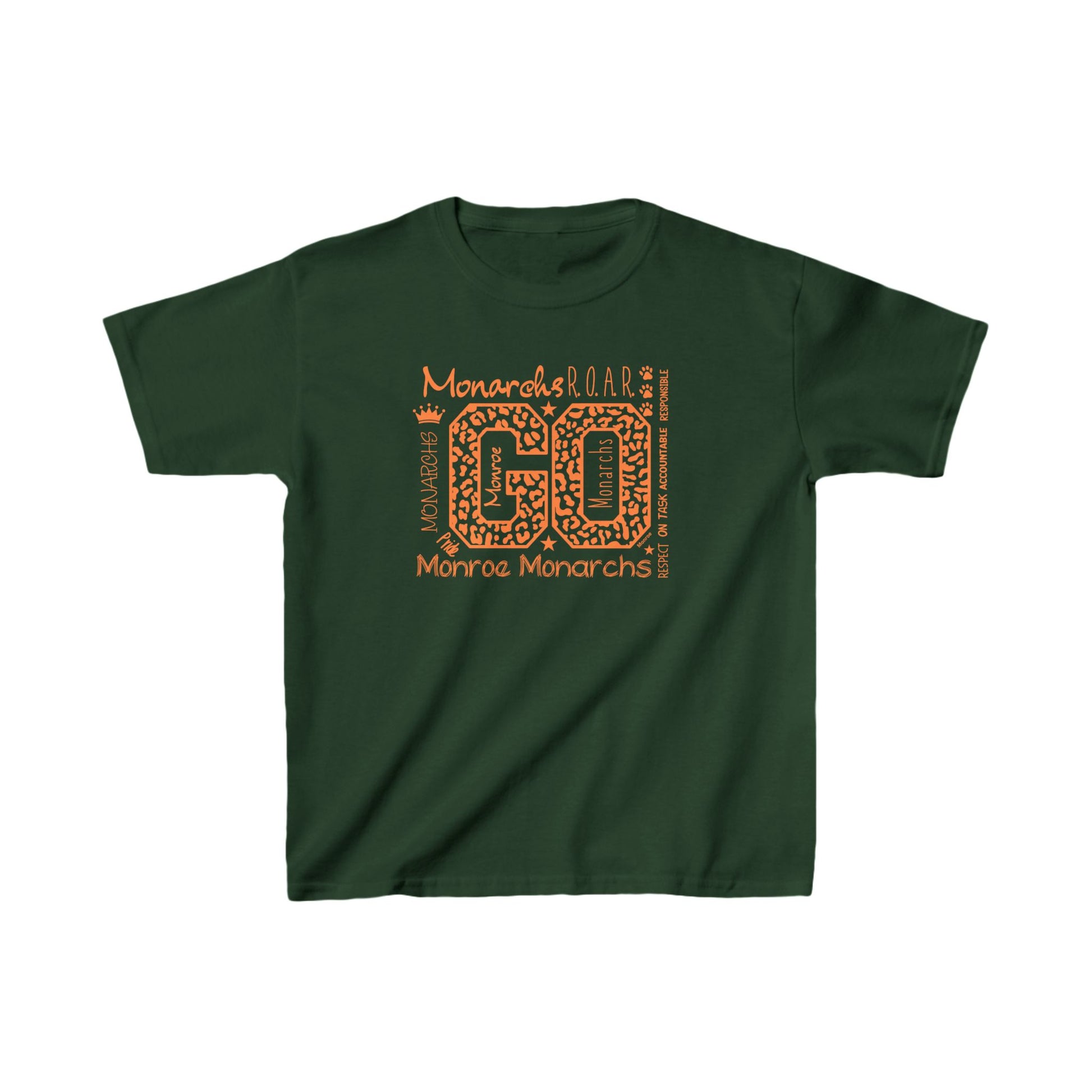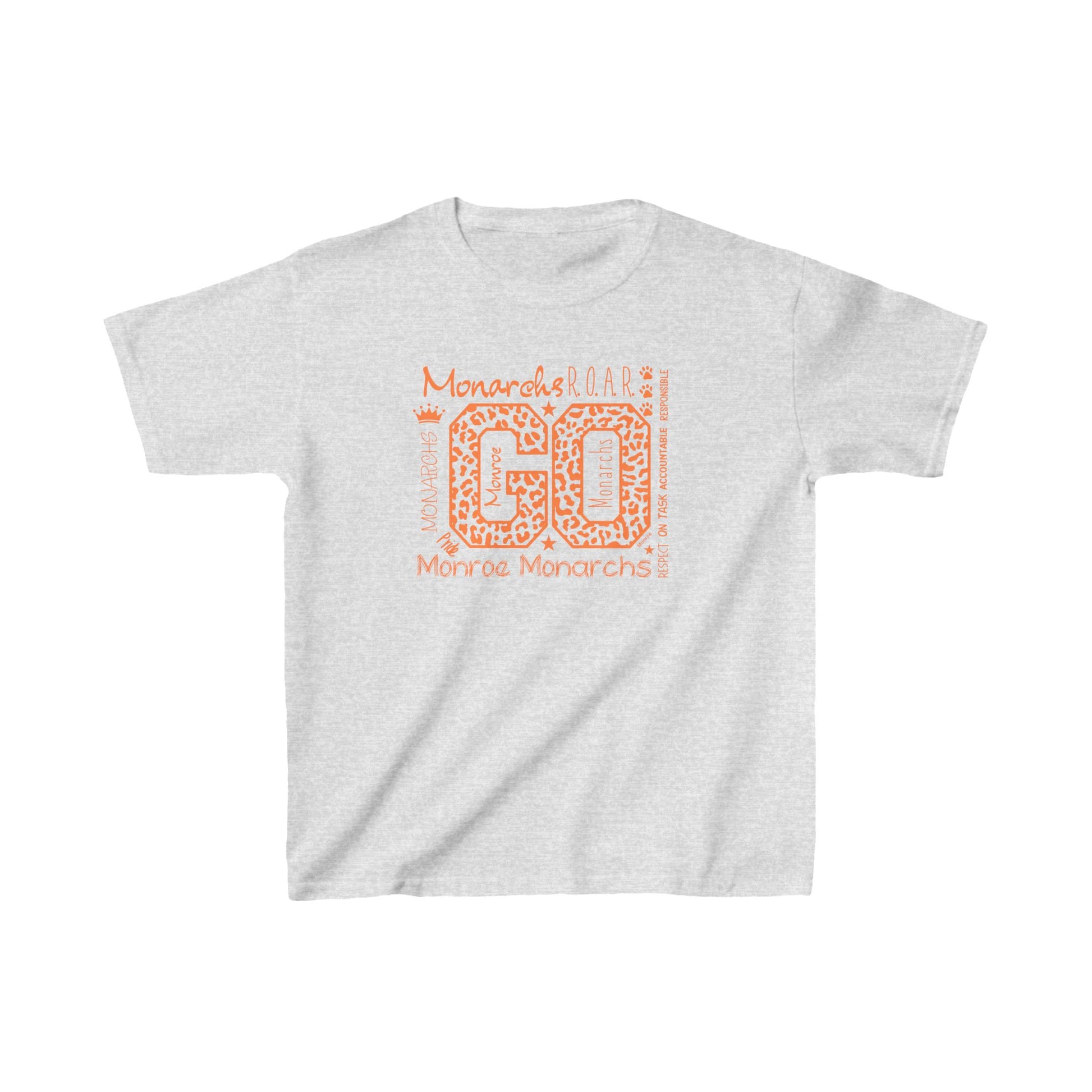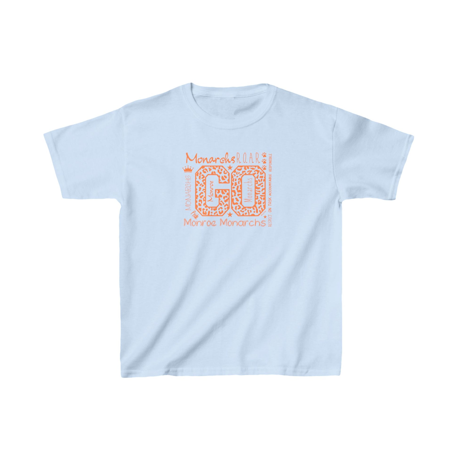 Kids Go Monarchs Orange Leopard Heavy Cotton Tee - Go Monroe Monarchs Cheer Shirt